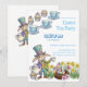 Hop on over for a delightful Easter Tea Party with this whimsical invitation! Featuring a charming illustration of the Easter bunny at a Mad Hatter / March Hare style tea party. The design includes playful cupcakes, colorful Easter eggs nestled in a bird's nest, and blooming spring flowers, all set against a soft pink and green color palette. It's the ideal way to invite guests to a magical celebration, whether for a birthday or a special Easter event.