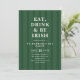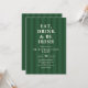 The card features a backdrop of bold, preppy green stripes, creating a vintage-inspired look that feels energetic yet tailored. The playful headline, "Eat, Drink & Be Irish," sets a fun, welcoming tone immediately, inviting guests to let loose. Despite the spirited message, the event details are grounded in a crisp, traditional serif font, ensuring the invitation remains legible, polished, and effortlessly chic. It’s the perfect way to gather your favorite leprechauns for a night of food, friends, and festivities.