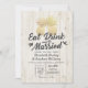 Mariage vintage / Manger Boire et être marié Modèle d'invitation - Elégant Faux Gold Foil Couple d'ananas sur Arrière - plan rustique en bois blanc. Un design parfait pour votre grand jour. Tous les styles de texte, couleurs, tailles peuvent être modifiés selon vos besoins !
