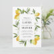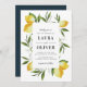 Ce design présente des citrons aquarelles peints avec des feuilles verdoyants et des fleurs blanches. Un bel arrière - plan bleu marine. Tous le texte et les couleurs de ce modèle faire-part de mariage peuvent être modifiés pour la police, le libellé, la taille et le placement