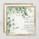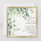 Les invitations de mariage botaniques modernes comprennent des feuilles d'olives rustiques à l'aquarelle mélangée à de la verdure et à l'eucalyptus, assortis à un cadre doré élégant. Ce design est idéal pour un événement de fête branché et élégant. Customisez ce design avec votre propre message et des informations personnalisées. Tous les dessins sont imprimés.