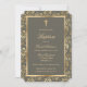 Invitation Ebony Gold Cross Script Floral Baptism