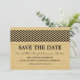 Chevron rustique moderne et tendance Enregistrer la date Annonce avec un arrière - plan imprimé de texture art numérique et un motif zig zag de rayures de chevrons noirs. Ce design est parfait pour annoncer un mariage rustique mais élégant. Facile à customiser, il suffit d'ajouter les détails de votre mariage. Cliquez sur "Customiser" pour trouver d'autres options de personnalisation.