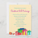 Invitation de fête d'échange de cadeaux de Noël avec des boîtes cadeaux aux couleurs vives et des ornements d'arbre de Noël avec les détails de la fête écrits en police moderne. Customisez avec votre propre texte.