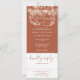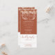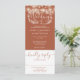 Une faire-part de mariage tout-en-un avec de jolies lampes à cordes et une typographie élégante sur un arrière - plan en terre cuite. L'invitation comprend une carte RSVP qui peut être coupée et des informations sur les invités. Conçu par Thisisnotme©