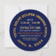 Réunissez vos amis pour assister à ce rare événement en style. Invités Invitations à votre rassemblement avec cette carte ronde unique qui présente une illustration d'une éclipse solaire totale dans les tons colorés de bleu nuit, jaune doré et aqua. L'envers offre de la place pour tous les détails de l'événement - il suffit de changer le texte pour répondre aux besoins de votre propre fête en utilisant les modèles faciles et fournis. Cette carte peut également être utilisée pour n'importe quel rassemblement ou soirée étoilée en astronomie.