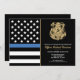 Honorer le dévouement et le travail acharné d'un nouvel agent de l'application de la loi avec cette invitation personnalisée à obtenir un diplôme de police. Doté d'un badge de police et d'un drapeau de la police avec des rayures noires et blanches audacieuses et une fière ligne bleue mince, ce dessin symbolise la force, le service et le sacrifice. L’invitation est personnalisée avec le nom du diplômé en lettres d’or, ce qui en fait un souvenir mémorable pour les amis, la famille et les autres officiers. Parfait pour célébrer un diplôme, une promotion ou un jalon dans la carrière d’un officier de police. Invitation vos invités dans le style et montrer le soutien pour le nouveau membre de la communauté mince ligne bleue.
