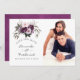 Cartes de photo de mariage à l'aquarelle peintes à la main avec des fleurs bohèmes violettes, pêche et prune, conçues pour être personnalisées rapidement et facilement selon les spécificités de votre événement.