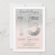 Une invitation à la fête d'anniversaire Quinceañera, moderne, chic et élégante en argent, avec une typographie moderne Sweet 15 avec un papier argenté sur un cadre rose pastel et rose pastel, avec une parties scintillant argentée, étincelle un arrière - plan en dégradé sombre. Ajoutez votre photo à l'arrière ou laissez un arrière - plan rose. Parfait pour le thème princesse Doux quinze!