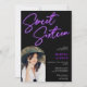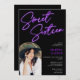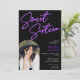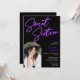 Un Scripts violet de Neon audacieux et lumineux avec arc photo douce invitation de fête de 16 ans en noir.
