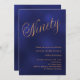 Une invitation design et moderne pour une fête du 90ème anniversaire. Un arrière - plan bleu marine, de couleur inégale et le mot Ninety écrit avec d'élégantes grandes lettres de script en faux or. Personnalisez et ajoutez un nom et des détails du parti.