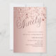 Une invitation design et moderne pour une fête du 90ème anniversaire. arrière - plan en or rose et le mot Ninety écrit avec d'élégantes grandes lettres de script en or rose foncé. Décoré d'étoiles dorées roses. Personnalisez et ajoutez un nom et des détails du parti.