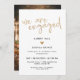 Une invitation de fiançailles pleine de charme avec "nous sommes engagés" dans une police manuscrite imprimée avec un faux effet parties scintillant or. Un petit coeur gribouillé rejoint vos noms écrits dans un script moderne. Ajoutez une photo à l'arrière de l'invitation.