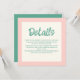 Écriture manuscrite rose et verte Détails du Mariage rétro