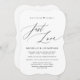 Planifiez une annonce de mariage en fuite, après le GRAND jour ? Invitez les invités avec cette carte d'invitation de réception/mariage en fuite au script moderne parfait. Ajoutez les détails de votre célébration dans la police/lettrine correspondante.