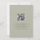 Faire-part de mariage à code QR "Modern Script We Do Soft Sage". Modifiez l'URL d'exemple pour générer automatiquement votre code QR vers votre site web de mariage au verso, ce qui en fait une option pratique pour que vos invités puissent répondre et voir tous les détails sans avoir besoin de cartes de réponse et de détails séparées. Un design simple mais élégant sur un fond vert sauge doux. Le texte stylisé "We Do" prend la première place en haut. Vous pouvez facilement personnaliser le reste du texte. Les couleurs du texte et du fond peuvent être modifiées si vous le souhaitez pour mieux correspondre à votre thème de mariage via l'option "personnaliser davantage".
