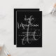 Écriture moderne Nous nous marions avec superposition de code QR Mariage Noir Ajoutez votre code QR à votre site web de mariage au verso, ce qui en fait une option pratique pour vos invités pour répondre et voir tous les détails sans avoir besoin de cartes de réponse et de détails séparées. Une typographie blanche sur un design noir élégant. Le texte est superposé sur un grand « Nous nous marions » écrit en élégante écriture manuscrite teintée en arrière-plan