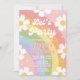 Invitation Editable Daisy Pastel Arc-en-ciel Fête d'anniversa