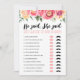 Achetez ce jeu éditable et profitez de haute qualité Il dit, Elle a dit carte pour votre événement! Devine qui l'a dit ? Mariée ou Groom ? C'est un modèle de jeu, Vous pouvez changer les questions comme vous le souhaitez! Design de fleurs.