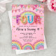 Invitation Editable Pink Rainbow Sequin 4th Birthday Invitati