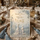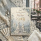 Partagez votre histoire d'amour avec un design romantique et vintage inspiré, mettant en vedette une élégante palette de bleu poussiéreux et d'ivoire, des fleurs en faux 3D et une typographie classique. Cette composition classique centre une scène de proposition magnifiquement encadrée sur un paysage de campagne ondoyant, entièrement réalisé dans des tons d'ivoire doux, de crème et de bleu ardoise atténué. La mise en page utilise une hiérarchie formelle, plaçant une calligraphie moderne imprimée avec grâce au-dessus d'une bordure florale sculptée simulée, créant l'illusion visuelle d'une lumière directionnelle frappant un travail en plâtre en bas-relief complexe. Il s'agit d'une image imprimée plate avec un effet de gaufrage en faux 3D et un effet de feuille d'or faux, et non un matériau en relief réel.