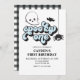 Éffrayant Une invitation d'Halloween 1er anniversaire avec fantôme, chauve-souris et araignée.