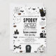 Un fantôme, un chat noir, une araignée, une chauve-souris, des bonbons, des bougies, de l'araignée et des citrouilles sont présentés sur cette mignonne carte d'invitation de soirée d'Halloween en noir et blanc. "Éffrayant Sur L'Invitation D'Anniversaire Du Fantôme D'Halloween Spooktaculaire Éffrayant !" Le texte dit : "PERSONNALISEZ facilement ce design avec vos détails !" Si vous avez besoin d'ARTICLES CORRESPONDANTS, veuillez consulter notre collection ou notre boutique correspondante.