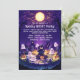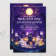 Cette invitation à la fête d'Halloween est conçue sur un thème amical, mignon et ludique pour les enfants. Le devant est une adorable scène avec des fantômes de dessins animés et des citrouilles gais. Ces fantômes amicaux ont des visages ronds et souriants, tandis que les citrouilles sont sculptés avec des expressions ludiques et légères. L'arrière - plan est sertie la nuit dans des teintes violettes douces et fantaisistes qui créent une atmosphère magique et enchanteresse. Une lune éclatante est suspendue dans le ciel, projetant une lumière douce sur la scène, avec des arbres caricaturaux, pas trop éffrayants, qui ajoutent à l'ambiance d'Halloween. En haut de l'invitation, la légende ludique dit : "Vous êtes invité à une Éffrayante fête GHOST !" dans une police amusante et audacieuse qui correspond au thème lumineux du design. Sous la légende, il y a beaucoup d’espace pour inclure tous les détails nécessaires, comme la date, l’heure et l’emplacement de la fête. L'arrière de l'invitation porte la même scène nocturne mignonne aux teintes violettes, fantômes, citrouilles et la lune, liant l'ensemble du design. Cette invitation est parfaite pour une fête d’Halloween pour enfants, mêlant un thème amusant et éffrayant avec des visuels amicaux et accueillants.
