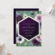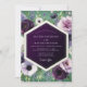 This botanical design showcases a deep eggplant and lavender color palette accented by crisp white anemones. The dark, moody floral arrangement includes lush roses and detailed greenery over a soft sage background. A sophisticated aesthetic is achieved through the contrast of dark blooms and delicate leaves.