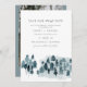 Ce modèle de "sauvegarde de notre nouvelle date" de mariage présente des arbres de pin d'hiver bleu ardoise rustique et des éclaboussures d'aquarelle. Modifiez facilement *la plupart* du libellé de cette invitation pour mieux répondre à vos besoins. Ajoutez votre photo au verso pour un effet personnel.