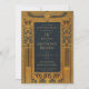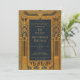 Cette élégante invitation en bleu vintage et or pour une fête d'anniversaire à thème en Egypte a un cadre doré avec des décorations égyptiennes anciennes : scarabée ailée au-dessus du texte et fleurs de lotus sur les côtés et le bas. Le texte est doré, comme le cadre, l'arrière - plan (et l'arrière) est bleu marine. L'élégant cadre doré aux décorations égyptiennes est tiré d'un livre vintage, "A History of Egypt" de James Henry Breasted, de 1905, maintenant dans le domaine public.