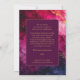 Le faire-part de mariage de la collection "Celestial Elegance : The Marble Symphony" rayonne d'une beauté intemporelle et d'une sophistication moderne, fusionnant sans effort l'art dramatique du marbre avec une palette de couleurs luxueuse. L'invitation présente un arrière - plan captivant en marbre foncé dans les tons violet et bleu marine, mis en valeur par des veines complexes de violet plus clair et des touches d'or. En haut de l'invitation, on peut lire l'élégante légende : "Alors que nous plantes ensemble les graines de notre avenir, nous vous invitations à partager la moisson d'amour qui s'est développée entre" dans un texte raffiné aux tons or, donnant un ton sophistiqué. Juste en-dessous, les noms du couple sont affichés en évidence dans un script plus grand et orné qui reflète l'opulence de la toile de fond en marbre. Sous les noms, les détails de la cérémonie, y compris la date, l’heure et le lieu, sont présentés dans une police élégante qui complète l’esthétique générale et maintient le charme sophistiqué de l’invitation. L'arrière de l'invitation reflète l'exquise oeuvre en marbre de l'avant, qui présente de riches teintes sombres et des accents dorés. L'espace central à l'arrière est grand pour le texte personnalisé, comme des détails supplémentaires, les options de transport, les suggestions d'hébergement, ou une note personnelle du couple. Cette zone de texte est élégamment bordée par le design en marbre, assurant une sensation de cohésion et de luxe tout en permettant une transmission claire d'informations importantes. Le design de ce faire-part de mariage mêle harmonieusement la beauté dramatique du marbre foncé à l'élégance raffinée du texte doré, créant une pièce mémorable et visuellement étonnante qui donne parfaitement le ton pour la journée spéciale du couple. Une variété d'articles correspondants sont disponibles pour compléter votre gamme de papeterie mariage, assurant une présentation cohérente et sophistiquée tout au long de la célébration.
