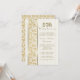 Magnifique invitation d'anniversaire de mariage dorée et blanche avec un fond subtil à rayures verticales blanches sur le devant de l'invitation et un panneau latéral en dentelle florale dorée élégant et détaillé. Le dos de la carte présente un motif de dentelle dorée assorti sur fond blanc. Personnalisez le devant de l'invitation avec vos informations. La carte est également disponible en version rectangulaire dans ma boutique.
