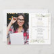 Avec des feuilles verdoyantes et un cadre doré chic, cette invitation de fête de remise des diplômes chic peut être personnalisée avec vos photos de diplômés et les détails de la célébration. Conçue par Thisisnotme©