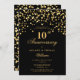 Invitation Élégant 10e anniversaire de Mariage noir et or