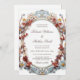 Celebrate your special day with this exquisite wedding invitation featuring a sophisticated Victorian-style oval frame. The design showcases intricate blue and gold scrollwork intertwined with a lush arrangement of delicate 3D-effect flowers in shades of dusty rose, soft peach, and muted blue. Perfectly suited for vintage-inspired, garden, or formal estate weddings, this invitation combines classic elegance with a touch of botanical artistry. All text elements can be easily customized to fit your specific ceremony details. Bride and room names only in an elegant calligraphic classic script. With bride and groom initials and the wedding date on the backside.