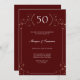 Une élégante invitation à l'anniversaire du 50e mariage avec des éléments décoratifs en feuille d'or (non feuille) et un arrière - plan bordeaux. Ajoutez simplement vos informations, ajoutez cette invitation à votre panier et profitez d'une merveilleuse fête d'anniversaire. Elégant Bourgogne 50e anniversaire Mariage Invitation Conception de jour férié | ©Melissa Patton - Designer