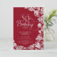 Invitation à la fête du 50e anniversaire en argent rouge. Design élégant avec des roses, fausse feuille d'or et police de script de typographie. Carte invitation tendance parfaite pour une célébration anniversaire élégante. Peut être customisé à n'importe quel âge. Personnalisez avec vos propres détails. Invitations Zazzle imprimées ou téléchargement instantané modèle imprimable numérique.