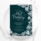 Invitation à la fête du 60e anniversaire Emerald green silver floral. Design élégant avec rose, faux feuille d'argent et police de script de typographie. Carte invitation tendance parfaite pour une célébration anniversaire élégante. Peut être customisé à n'importe quel âge. Personnalisez avec vos propres détails. Invitations Zazzle imprimées ou téléchargement instantané modèle imprimable numérique.