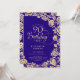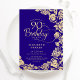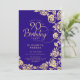 Invitation de 90e anniversaire à la fête de floraison d'or violet. Design élégant avec des roses, fausse feuille d'or et police de script de typographie. Carte invitation tendance parfaite pour une célébration anniversaire élégante. Peut être customisé à n'importe quel âge. Personnalisez avec vos propres détails. Invitations Zazzle imprimées ou téléchargement instantané modèle imprimable numérique.