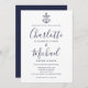 Invitation Élégant Ancre bleu marine nautique Mariage