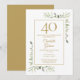 Avec ses délicates feuilles aquarelles, cette invitation chic pour les 40 ans peut être personnalisée avec les informations de votre célébration d'anniversaire spéciale, avec un fond doré au verso. Conçue par Thisisnotme©