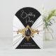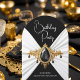 Invitation Elégant Anniversaire Blanc Noir Bijou Or Soie