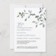 Cette simple conception d'anniversaire comporte une verdure aquarelle avec des accents bleus, un fond blanc et une typographie élégante.