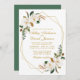 Elégant script or, Aquarelle White Magnolias Faire-part de mariage comprend la verdure botanique et les feuilles d'eucalyptus sur un cadre géométrique or. Retour vert.