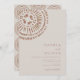 Ces invitations de mariage modernes présentent un cercle de style art déco tribal dans des tons terracotta. Il est mis en valeur par le cercle art déco tribal à l'aquarelle terracotta assorti au verso. Son texte serif et script classique le rend classe et élégant.