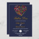 Cette élégante invitation mariage de automne est parfaite pour un mariage d'automne moderne. Le design simple présente un coeur coloré de feuilles d'automne avec une élégante typographie blanche et jaune sur un arrière - plan bleu marine