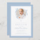 Elegant Baby Blue Bow Photo Baptism Invitation. For best results upload a square image of the baby.