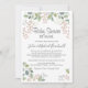 Un baby shower élégant par courrier d'invitation à envoyer à la famille et les amis qui veulent encore douche les parents fiers d'être avec des cartes et des cadeaux. Doté d'une belle fleur rose et d'un cadre d'aquarelle feuillue sur un arrière - plan blanc classique et un modèle facile à customiser.