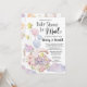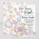 Elegant rose Floral Balloons Baby shower par Mail - Célébrez l'arrivée prochaine de votre précieux bébé avec cette jolie et adorable invitation "Baby shower par Mail". Cette invitation présente une jolie demi lune décorée de ballons bleus et roses, étoiles brillantes, fleurs printanières, feuillage vert doux et de jolies lettres avec coeur rose dans le ciel au-dessus des nuages colorés. Ce modèle est parfait pour ceux qui vivent loin des êtres chers, mais souhaitent quand même rendre spécial pour la mère ou les parents d'être en les inondant d'amour et de cadeaux. Tous les textes sont pré-arrangés pour que vous personnalisiez facilement et rapidement avec vos détails baby showers.